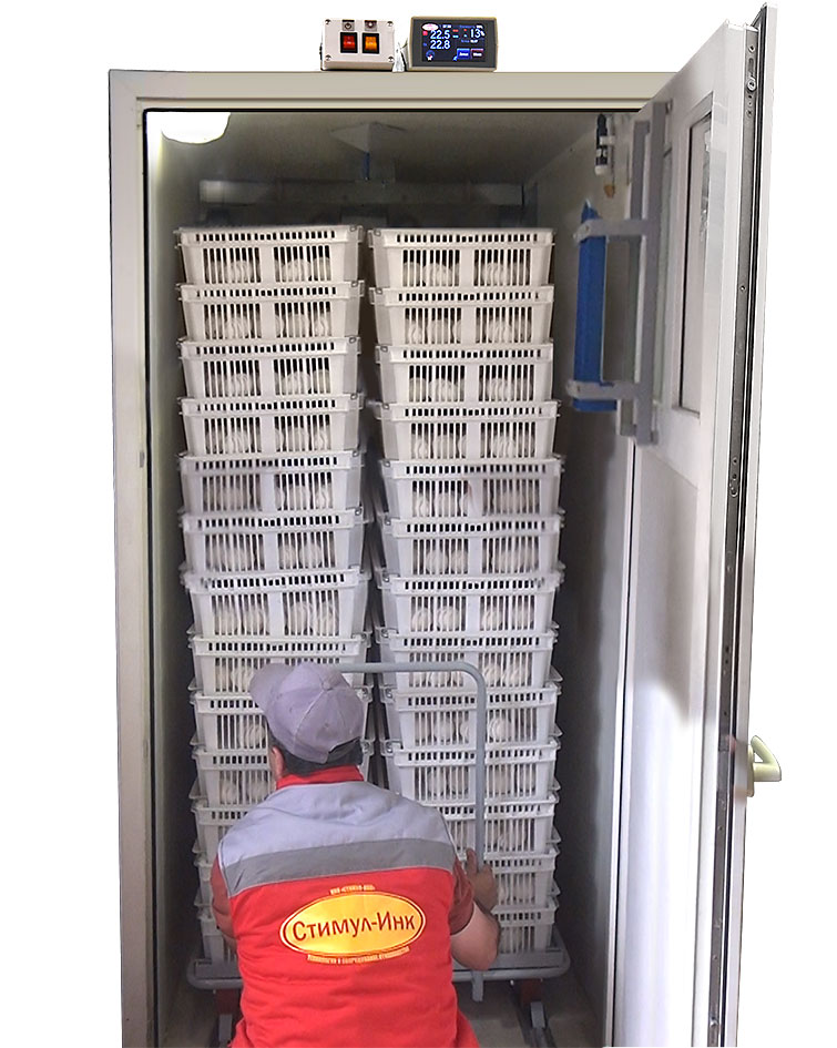 Инкубатор СТИМУЛ-4000М1П предварительный комплектуется предварительной тележкой с универсальными инкубационными лотками для яиц индейки, водоплавающих видов птицы, кур.