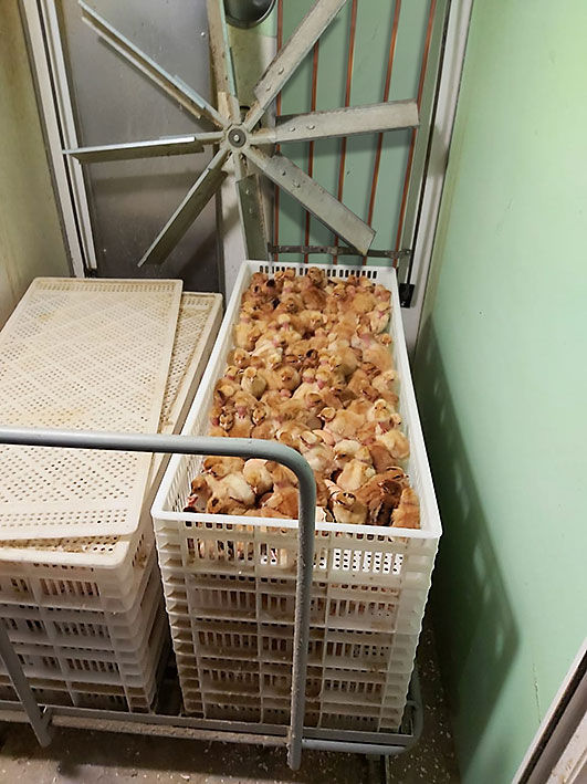 Выводная тележка с выводными корзинами. Корзины можно выбрать по виду птицы: