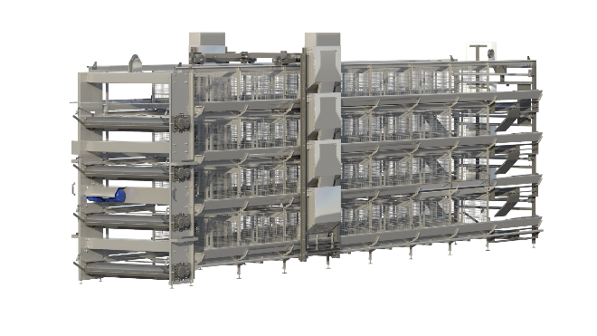 <li>Клетка оснащена автоматической системой поения, автоматической бункерной или ручной системой кормления, <b><i>регулировкой высоты линий поения одновременно по всей длине батареи</i></b>.</li>