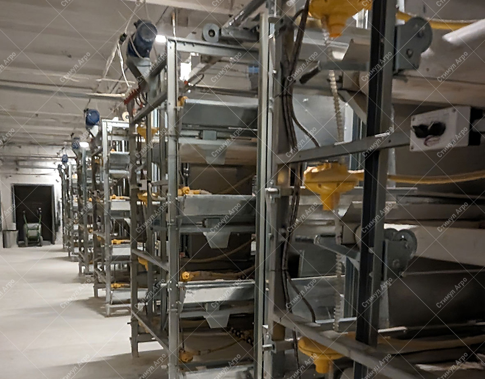 <li>Предусматривает использование автоматической ленточной или механической (при помощи лебёдки) системы помётоудаления.</li>