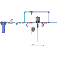 Устройство для фильтрации и подачи воды нужного давления. Узел включает всю необходимую трубную разводку, фильтры очистки и счетчик воды. Комплект включает в себя медикатор.