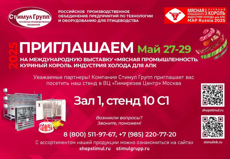 Мы рады пригласить вас на ключевое отраслевое событие в России — международную выставку «Мясная промышленность. Куриный Король. Индустрия холода для АПК / MAP Russia», которая пройдет с 27 по 29 мая 2025 в ВЦ «Тимирязев Центр» Москва.